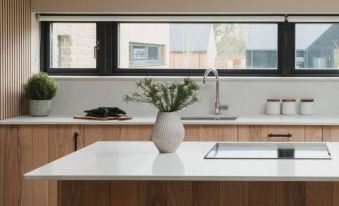 This thoughtfully designed open-plan living and dining area is flooded with natural light from a stunning sky-high roof lantern, creating an airy yet cosy atmosphere. Whether you're curling up by the roaring fire or preparing a feast in the timber-adorned kitchen, every moment feels effortlessly special.