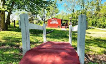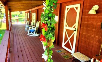 First, let me say that the hosts are amazing!! Very responsive and helpful. We had the honor of staying at the new Honey House, which is just across the drive from the Farmhouse. The Honey House has a cute bee theme. It's a studio set-up, with a king-size bed, small folding dining table with 2 chairs, dorm-size refrigerator / freezer combo, coffee maker, and microwave. The bathroom has a shower (no tub) and a barn-style door. There is a small front porch with chairs and a side table to enjoy a cup of coffee and the view. It's a great place for an overnight stay for a couple. I don't know why I didn't take pictures of the outside, but I'm attaching a few of the inside.