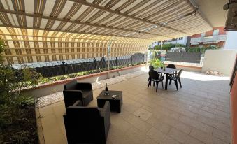 Ma la forza di questa casa sta nella comodità ambienti pulitissimi con climatizzatori nuovi, il posto auto davanti la porta di casa, un enorme terrazzo con tende da sole, tavolo, sedie dove mangiare e un salottino dove godersi il fresco la sera. La casa è a un passo dalla piscina, che è pulita e ben gestita, ed a un minuto a piedi dalla spiaggia.
