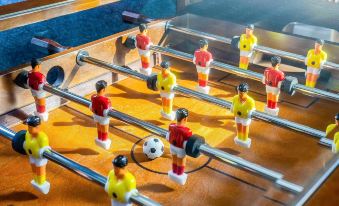 2nd floor: rest, play and explore as you enter into an old-school game room with large shuffleboard, vintage arcade games, foosball table, dozens of board games, record player, and swing chair nook.