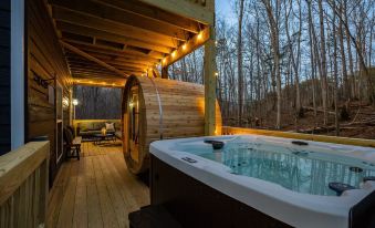 -Barrel 4 person Sauna & 7 person Hot Tub sit on a back deck