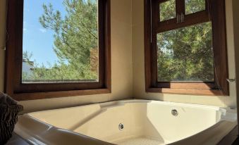 Questa baita vanta un caminetto e una vasca idromassaggio privata interna. Troverai anche una cucina con un frigorifero con congelatore, un microonde e una lavastoviglie. In camera potrai usufruire di una TV a schermo piatto da 40 pollici con canali via cavo.
