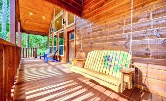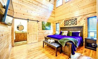 This high-rated cabin guarantees to keep you happy and relaxed. Beautifully decorated grapevine style finishes create a cozy cabin atmosphere and unique hand-carved flickering wall sconces add to the magical touch. The main open living area has lots of windows for an incredible view of the surrounding mature tall pines and beautiful nature sounds.