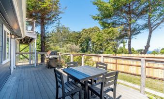 The beach cottages across the street are not kid friendly. This house is. Its got a great big yard, a big fire pit, nice kitchen and a large dinning area. Some of our party stayed in the beach cottages across the street and the kids (2 and 4), with their parents plus one, stay in this house. We all gathered at this house after the days activity for a group meal, wine drinking around the fire pit for the adults and airplane flying / soccer ball kicking for the kids. There are not a lot of restaurants in Mendocino that can accommodate a party of 12 with two small kids so this was definitely a good solution for our party. All the beds are comfortable and the upstairs suite is a nice feature. The hosts were very responsive to a minor housekeeping issue. We would rent this house again.
