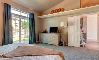 It is a one level home, with a walk-in shower and soaker tub in the master bathroom. King bed, blackout curtains and a TV in the master.