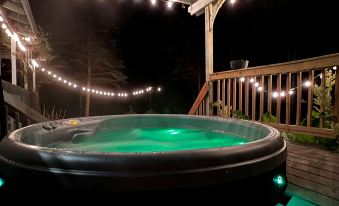 Step outdoors where a spacious wrap-around deck invites you to savor captivating al fresco dining. As the sun sets, casting golden hues across the sky, the area transforms into a peaceful retreat for relaxation in our hot tub. Alternatively, gather with friends around the welcoming fire pit, where flickering flames dance in harmony with the crisp mountain air. These outdoor pleasures will elevate your stay while crafting enduring moments beneath the expansive, star-studded night sky.