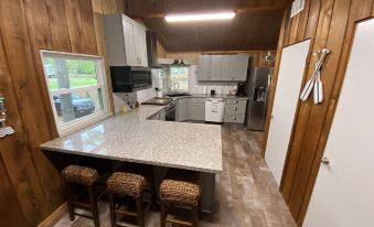 The house itself was very enjoyable. There was ample space for our group of nine and we really enjoyed the large living space to not feel cramped. While eating outside on the wrap around porch is nice sometimes, it's impossible for the entire group to eat together, especially inside. While the listing states that there's only one bathroom, I must have skipped that when reading the home was fit for ten people. While we made it work, it definitely made the weekend more challenging. The dock was nice for fishing, but I wouldn't recommend swimming. The water plants are more overgrown than the pictures show, which can happen with seasonality, but it didn't feel safe to swim without getting legs caught and the plant life brought a plethora of turtles. Be warned if you plan to fish that you'll catch so many turtles too. This location is great if you want a relaxing weekend to sit by a fire or play games like charades inside and is super close to the bridge to get over to Louisiana. But I wouldn't recommend this lake as a vacation destination as there isn't even boat rental places nearby, you need to bring all your own stuff. That's not on the property, just affected our overall weekend.