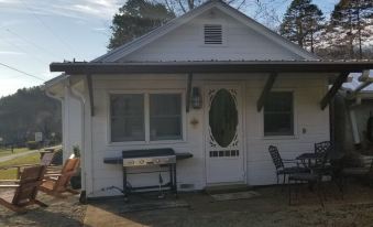 Whether you are looking for a cozy cottage to unwind after an adventurous day outdoors or peaceful privacy and relaxation, Coon Creek Cottage is perfect for you! Disconnect at this comfortable 2 bedroom, 1 bathroom home that comfortably sleeps four. Great for remote work with fast wifi with a dedicated workspace. This cabin is ideal for a couple's retreat, family getaway, or friends who are looking for a Smoky Mountain escape. Stay with us to experience the charm and scenery of the mountains. Our 1940s farmhouse was totally renovated last year and has a bathroom with a large rainhead shower. The kitchen was remodeled with new appliances as well as a new instant water heater and new HVAC. The farmhouse has 100-year-old recycled beams and floors. Newly remodeled 2 bedrooms with queen beds. Office with a fold-out couch. Eat-in kitchen with all new appliances. Double oven range, vintage refrigerator, dishwasher. Patio dining with outdoor grill and griddle. The gathering space features a chiminea with a pizza oven. Across the street is a two-acre play and picnic area bordered by a small creek. We also have another VRBO across the street, Coon Creek Too. VRBO#3312950. Although quiet and somewhat secluded, it is only a ten-minute drive to downtown Franklin on paved roads with easy year-round access. Minutes more to Sylva, Harrah's Cherokee Casino, and Western Carolina University. Pets are welcome when our $75 per visit Pet Fee is added when you specify a pet