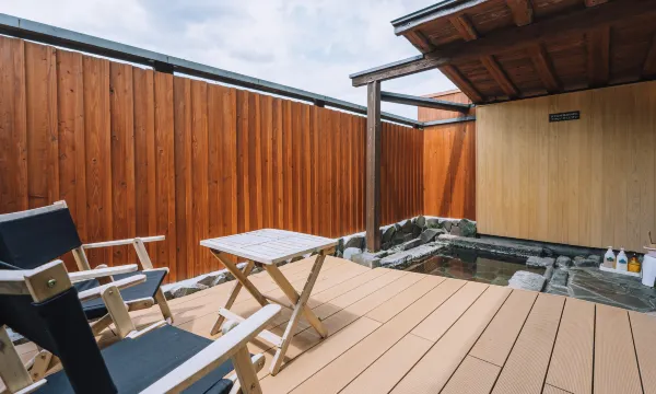 Best in-room outdoor onsen you can find. Hotel room has a living area and bed area, it's not that big but no one cares when you have a nice outdoor onsen built by rocks.