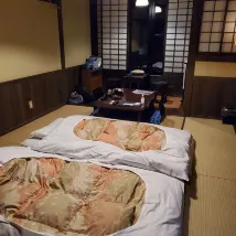 Excellent location. If you drive, your driving skill got to be good to manoeuvre through the narrow streets and the sharp bend to the onsen car park. The only downside was some of the onsen areas do not have bathing facilities. You will need to bathe in the indoor onsen area, put on your yukata again (cause you will need to walk through a path where the public can see you, to the cave and outdoor onsen.