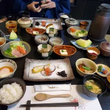 Durante il nostro primo viaggio a Kurokawa, abbiamo scelto questo hotel. È comodo da raggiungere e vicino alla fermata dell'autobus (credo che avremmo potuto chiedere un passaggio, ma per qualche motivo non l'abbiamo fatto, ma al ritorno ci hanno lasciato alla fermata). È un ryokan molto bello, con un onsen fantastico. Iwato è una grotta interessante e molto bella. Siamo rimasti per due giorni e il secondo giorno ci hanno servito un menù diverso per cena e colazione per variare. La cena era molto abbondante; non sono riuscito a mangiare molto. È un posto bellissimo e suggestivo; ci tornerei volentieri.
