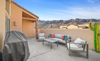 Step into the private patio to breathe the clean desert air and settle into the soft outdoor seating. Whether you’re sipping your morning coffee or stargazing at night, the panoramic views of the majestic red rocks will leave you in awe. Throw a steak on the natural gas grill and enjoy a cold beverage while watching the setting sun.
