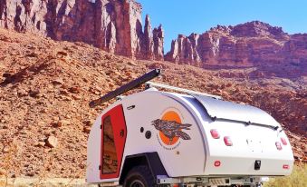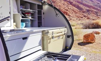 Nothing beats the feeling of spending the night in the great outdoors and there is no better way to experience Moab's amazing red rock desert. Our new Escapod Topo 2 trailers will make your camping experience a glamping experience! Especially when you get to cuddle up in a cozy queen sized bed with soft sheets, pillows, and comforters. Greet the beauty of the red rocks while cooking breakfast in our well equipped outdoor kitchen. We deliver to your campsite. No need to tow!