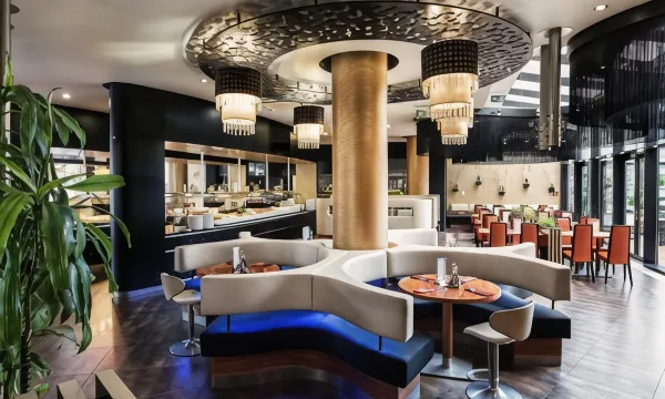 Il ristorante propone piatti cinesi e giapponesi alla carta o a buffet. A vostra disposizione anche un'ampia zona pranzo all'aperto e un bar.