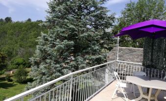 Apartment redone large and openwork in village house on the top floor with private entrance. South-facing terrace with a beautiful view of the Col de l'Asclier, two large bedrooms with views of the Cevennes and Mont Lozère, one with a 140 bed and a BZ for 2 people, and the other with a bed in 140. Cot available. Washing machine and dishwasher, dining room with T.V. Wifi connection available.