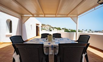 The house feels a bit tired inside, there is no air con and no wifi, a dated kitchen and a gas bottle that you have to turn on then off again for hot water. But the location is great, there are lots of outdoor areas to sit and enjoy the views and eat and drink at and a great private pool.