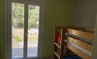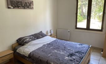 Single-storey air-conditioned villa (2 min walk from the village center) 25m2 covered terrace overlooking the peaceful above-ground swimming pool (deckchairs, parasols, barbecue, etc.)