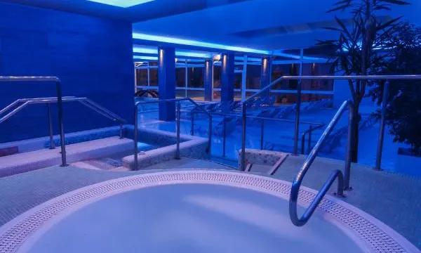 Приезжали в отель в начале января на два дня, народу было очень мало, но все работало: сауны, бани, ингаляции, релакс комнаты и т.п. и, самое главное, термальный бассейн. Он состоял из двух частей, одна в помещении, а вторая на улице, эти части соединялись проходом-перешейком прям в воде из теплой зоны в холодную, так что не надо ходить по улице, можно плавать то там, то там, что очень удобно. В термобассейне в уличной части есть забавный искусственный грот с подсветкой и всяким гидромассажем. Во всех частях термобассейна устроены разного типа джакузи и гидромассажи, глубина уличной части рассчитана на рост взрослого человека. 90% всех форсунок работают, это было приятно. Вода хоть и термальная в бассейне, но все же хлорку в воду добавляют, видимо, чтоб не цвела вода или из соображений гигиены, запах хлорки от купальника чувствовался в номере, когда переодевались. Вокруг бассейна на улице красивая территория, симпатичные пальмы, деревья, цветы и кусты и вид на гору. Отель не новый, но не ушатанный. Номер просторный, метров 18 квадратных, мебель и двери из натурального дерева, в санузле новая ванна. Также в номере большой балкон для тех, кто курит или хочет побыть на улице. Полотенца новые, пушистые, также дают махровые халаты, все белоснежное, чистое, включая постельное бельё. Также давали пляжную сумку, чтоб с ней ходить в бассейн. Матрасы в меру мягкие, не продавленные, спать было удобно. В номере есть сейф, который работает. Завтрак очень хороший, разнообразный, с овощами, фруктами, оладушками, омлетом, жареным беконом, орешками, сладостями разных видов, чай - пакетики 8 видов и кофе из кофемашины, вода с лимоном, соки, все можно наливать самостоятельно, было вкусно. Также один раз ужинали в отеле, очень вкусно, можно было выбирать один вариант ужина из двух предложенных, рыба была потрясающая и вино по бокалам прям понравилось. Персонал отеля дружелюбный, девушка на ресепшене разрешила нам задержаться на час без дополнительной оплаты. В целом, за свои деньги хорошее соотношение цена-качество.