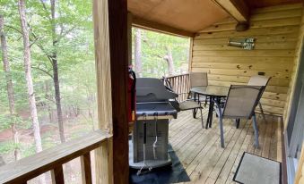 Outdoor Living: Covered deck, outdoor dining table, propane grill, wooded view (don't miss all the deer).