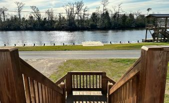 Enjoy sunset views and waterfront amenities on the Calcasieu River. Our 2/1 fully furnished river house is perfect for your next getaway, corporate meeting or retreat with a screened in patio downstairs perfect for entertaining as well. Waterfront access and dock also available.About pets:Pets allowed: dogs and cats less than 50 lbs per pet (limit one pet total).About checkOut:Check out before 11:00 AM.About children:Children allowed: ages 0-17.About checkIn:Check in after 4:00 PM.About smoking:Smoking is not permitted.About minBookingAge:Minimum age to rent: 25.About events:Events allowed: family gatherings, birthday parties, weddings.Maximum event attendees: 16.