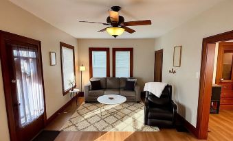 The host is AMAZING. Never a time she didn’t answer when I had a question. Parking was great. It’s street parking but we never had an issue having a spot. The only thing I had an issue with is I would have loved a deadbolt on the main door for while we were sleeping. The automatic lock and pin pad on the door were nice but I could not figure out if it was locked on the outside or not. If you turn the knob on the inside it automatically unlocks so I never knew if it was locked on the outside and that made me nervous. Other than that fantastic stay!
