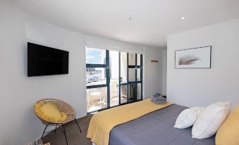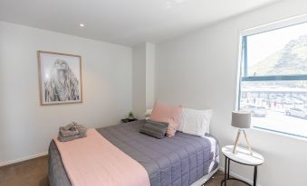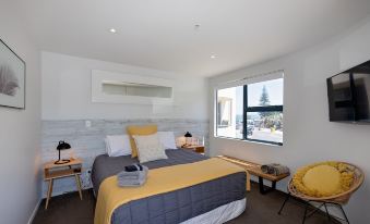 Light sunny and North facing this trendy apartment looks directly at Mauao (Mount Maunganui). Your modern, open-plan living space leads onto an outdoor deck area, there's plenty of access to the sea breeze and summer Sun.