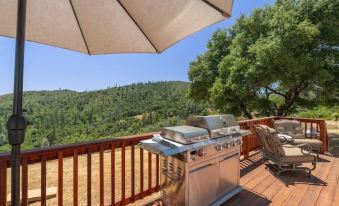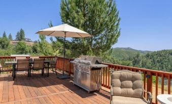 We have a propane fire pit overlooking the beautiful foothills at your backyard view! Located on the back deck, enjoy a glass of wine with a crackling fire and views of the rolling foothills!