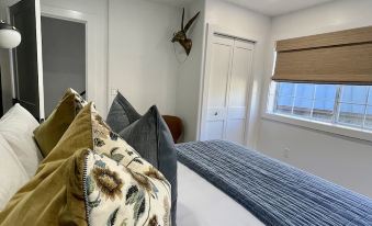 The lower level presents two luxuriously appointed bedrooms, with fine linens and the comforts of home. One room accommodates 2 people with a queen size bed and the other bedroom accommodates 4 persons with a bunk bed, twin bed and trundle. (**Please note the upper bunk can only accommodate a child). This level also has a shared bathroom with a shower and heated floors, as well as a laundry area with full size washer and dryer.