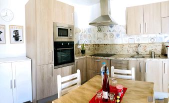 Arrivate in una cucina a vista completamente attrezzata, che non lascia nulla a desiderare e permette agli ospiti di godersi comodamente anche un soggiorno più lungo.