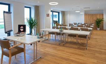 Das Hotel liegt sehr ruhig mitten in der Natur, es ist kein Verkehrslärm aus der Umgebung zu hören, was sehr angenehm ist, wenn man eine Auszeit aus städtischem Lärm sucht. Auch die Nachtruhe ab 22 Uhr auf dem Gelände wurde eingehalten. Das Deluxe-Doppelzimmer ist sehr schön eingerichtet und sehr geräumig mit abgeteilten Wohn- und Schlafbereich. Sehr gut gelöst ist die Positionierung des Fernsehers in der Raumtrennung mit der Möglichkeit, diesen zum Sofa oder zum Bett zu drehen. Schön sind die großen Panoramafenster und der große Balkon mit Seeblick. Leider liegt dieser direkt über der Terrase des Restaurants, so dass man von oben den Restaurantgästen direkt auf den Teller blickt und umgedreht auch Zigarettenrauch hoch und bei geöffneten Fenster ins Zimmer zieht. Positiv ist auch das große Fliegengitter für das geöffnete Panoramafenster hervorzuheben, da am See und generell in der Natur sonst viele Stechmücken ins Zimmer kämen. Das Bad ist mit einer großen Dusche mit Regendusche und Brausekopf ausgestattet. Der Fön funktionierte auf der höchsten Stufe leider nur wenige Sekunden, dann schaltete er sich selbst ab. Wir bekamen von der Rezeption dann einen Ersatzföhn gestellt. In einem 4-Sternehotel erwartet man gerade im Urlaub eigentlich eine tägliche Zimmerreinigung, diese erfolgt in dem Hotel jedoch nur alle zwei Tage. Bei der ersten Zimmerreinigung wurde weder das gebrauchte Geschirr weggeräumt, noch der Boden gesäubert. Das Bett war ungleich gemacht und der Schlafanzug einfach auf einen Haufen geschmissen. Nach einer Beschwerde wurde das Geschirr sofort getauscht und versprochen, dass am nächsten Tag außerplanmäßig der Fußboden gesaugt wird, was leider nicht gemacht wurde. An den darauffolgenden Tagen ist dann das Notwendigste gemacht worden, aber in einem 4-Sternehaus mit gebuchten Deluxezimmer erwartet man einen anderen Zimmerservice. Im Restaurant war das Personal beim Frühstück und Abendessen sehr aufmerksam. Es wird ein reichhaltiges Frühstücksbuffet geboten. Leider fehlt ein richtiger Orangensaft, es gibt nur süßes Zuckerwasser mit Orangengeschmack. Nicht ganz klar ist, wieso es an manchen Tagen Kaffee aus der Thermoskanne gibt und an anderen Tagen ein Kaffeeautomat zur Selbstbedienung mit verschiedenen Kaffeespezialitäten zur Verfügung steht, wie es heute inzwischen üblich ist. Am Sonn- und Feiertag wirkten die Brötchen aufgebacken, obwohl es grundsätzlich die gleichen Brötchen wie an den anderen Tagen waren. Der Saunabereich ist ansprechend gestaltet, die Sauna verfügt über ein Panoramafenster mit Seeblick und der Ruheraum ist auch schön ausgestattet.