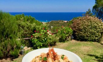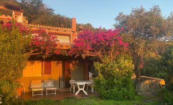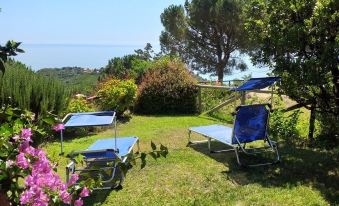 Villa with sea view in a quiet residential area on Monte Nai. Quiet, breezy corner of paradise, away from chaos. Garden for exclusive use with green lawn, veranda, barbecue and outdoor shower. It is composed of: Double bedroom - Bedroom with two single beds Two bathrooms with bidet and shower Living room with table and sofa - Kitchenette with fridge, stove and microwave Panoramic covered veranda with table, chairs and barbecue.About pets:Pets allowed.About checkOut:Check out before 11:00 AM.About children:Children allowed: ages 0-17.About checkIn:Check in after 4:00 PM.About smoking:Smoking allowed: in designated areas.About events:No events allowed.