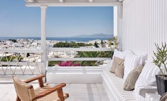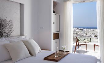 Located in Mykonos, near Fabrica Square and Matoyianni Street, this hotel offers a spa with massages, body treatments, and facials, along with a fitness center and an outdoor pool. Guests can enjoy complimentary Wi-Fi, concierge services, and gift shops. Dining options include two on-site restaurants, one featuring Japanese cuisine (Matsuhisa Mykonos), and limited-hour room service. There's also a poolside bar and two lounges. A buffet breakfast is available daily from 8:00 AM to 11:00 AM for a surcharge. The hotel provides dry cleaning/laundry services, multilingual staff, and laundry facilities. Airport and ferry terminal shuttles are available 24/7 for a surcharge. The 45 air-conditioned rooms feature private furnished balconies, LCD televisions with satellite programming, and complimentary Wi-Fi. Private bathrooms include designer toiletries and hair dryers. The hotel is closed between October 23 and April 19.