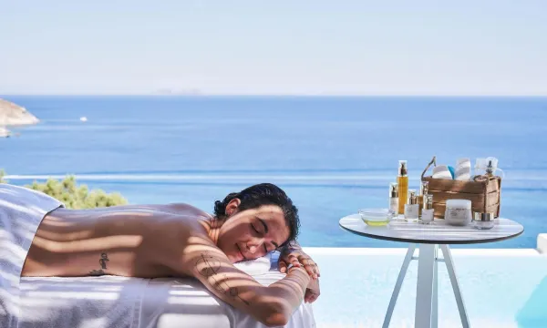 Hotel bellissimo, perfettamente inserito nel territorio grazie a un design elegante e a materiali naturali, come il legno e la pietra. Domina il bianco che spicca sul blu del mare intorno. La camera ampia e pulita, una intera camera dedicata alla doccia, enorme. Letto comodissimo tra diversi guanciali. Terrazza molto grande con tavolo e sedie vista intera baia di Kalo Livadi. Piscina molto elegante, panoramica sull'intera baia. Servizio bar e ristorante efficiente, compreso il vino italiano nella wine list. La spiaggia di Kalo Livadi è raggiungibile comodamente a piedi e si può scegliere tra la spiaggia libera o un lido attrezzato a ottimi prezzi. L'hotel è a disposizione del cliente per tutte le sue richieste, compreso il noleggio di motorini, taxi e transfer per l'aeroporto. La Direttrice gentilissima, parla benissimo italiano, ci ha messo a nostro agio e accolto benissimo. Grazie per questi giorni stupendi, non vediamo l'ora di tornare! Antonio Lillo