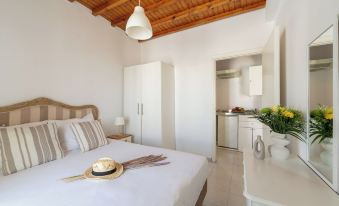 Le propriétaire nous a fait un accueil magnifique et nous a montré sur une carte les lieux incontournables de Mykonos. Il y a une jolie terrasse avec une vue magnifique. Le logement est bien équipé propre et la literie est confortable. L'emplacement parfait près du port