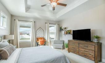 Award winning floor plan with a perfect layout for entertaining guests. Some of the features of the home include laminate flooring, quartz countertops, soft close cabinets, under cabinet lighting, gas range, stainless fridge and dishwasher. The living room offers very comfortable leather reeling sofa's with heat & massage. There is an stand up arcade game in one of the guest bedrooms for your enjoyment. Very comfortable backyard with many amenities including a pool, hot-tub, bbq and plenty of seating. The neighborhood is quiet & provides walking paths and access to greenbelt.About pets:Pets allowed: dogs less than 50 lbs per pet (limit 2 pets total).About checkOut:Check out before 11:00 AM.About children:Children allowed: ages 0-17.About checkIn:Check in after 4:00 PM.About smoking:Smoking is not permitted.About minBookingAge:Minimum age to rent: 18.About events:No events allowed.