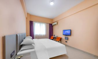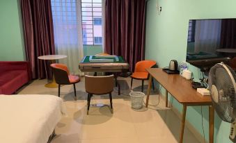 來這兒住了一晚,真心不錯!房間配色清新,藍綠牆面看着就舒心。床品乾淨,睡一覺超解乏。傢俱佈置合理,衣架、電視都方便實用。空間寬敞不逼仄,在這待着特自在。價格也實惠,性價比超高,下次出行還選這兒!