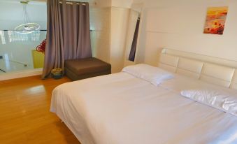 房間不錯,這麼便宜還有投影,洗衣機冰箱,還有一次性用品,空間又大,床也不錯,睡的挺舒服的,衞生打掃很乾凈,老闆娘態度很好,我老公也挺喜歡的,值得推薦