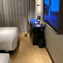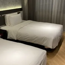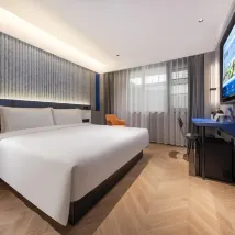 Pleasant, new hotel with very nice receptionists. Everything very clean and working. Big room, comfortable beds, luxury bedding. Fee loundry room equipped with everything you may need, even bottled water. Nice breakfast, free night porridge (plus there is bottled water and some yoghurts in the fridge). Nice starting point to visit Nanjing museum (about 10 minutes walk). We were upgraded with free breakfast and get a very nice gift at checkout. There is a very good cake shop with Western style cakes (called 85 degrees) next street and 7 eleven near the museum.