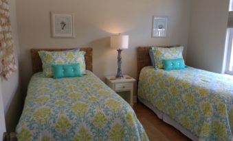 To the left of the kitchen area and living area are three additional bedrooms. The master features a king bed with sliders to the lanai. Private master bath, large walk in closet and a flat panel HDTV complete the suite. Bedroom number two features two twin beds decorated in a coastal theme with a 4 TV. Bedroom number three features two twin beds and a ceiling fan.