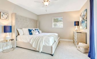 The second & third bedrooms are furnished with queen sized beds, still keeping with the coastal decor. The home's main bathroom sits in between both of these two bedrooms and it, too, has a tub.