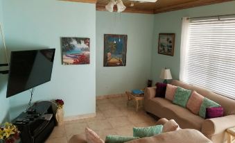 Breathtaking, panorama, and restful views of the sea at this Waterfront, seaside home! Snorkel and swim at beautiful, colorful Coral Reefs or Dive/fish for Snappers and Lobsters in the ocean 35 steps away from house! The outdoor area has a private pool, and adirondack chairs to enjoy. There are 3 bedrooms and two bathrooms. 1st room has a King Size Bed with Ocean Views. The 2nd, Queen Size bed and Ocean Views, 3rd room, two full beds. Bedrooms have 55 inch TV's, high speed Internet. Relax & unwind as you feel the ocean breeze!The outdoor area has a covered patio with an adjacent room for washer/dryer.