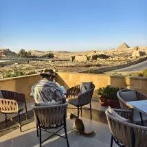 1. Posizione ideale rispetto alle piramidi. Di fronte all'ingresso dell'hotel si trovano le biglietterie per l'acquisto dei biglietti per le piramidi. Il 2° piano, dove viene servita la colazione, è il luogo ideale per ammirare la vista sulle piramidi. Al 4° piano, il ristorante offre inoltre una splendida vista sulle Piramidi in qualsiasi momento della giornata. La sera abbiamo ammirato lo spettacolo di luci sorseggiando una tazza di tè aromatico.
