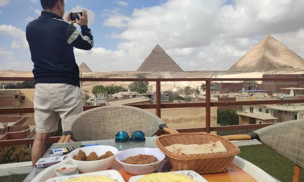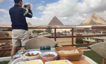 Struttura in prossimità dell’ingresso alla Necropoli di Giza, con meravigliosa terrazza sulle Piramidi su cui viene servita la colazione e ove é possibile cenare ordinando del cibo alla reception ( idea geniale). Le camere sono disposte ai piani sottostanti e sono moderne e pulite. Il personale é molto carino e disponibile attento a tutte le nostre esigenze comprese le escursioni.