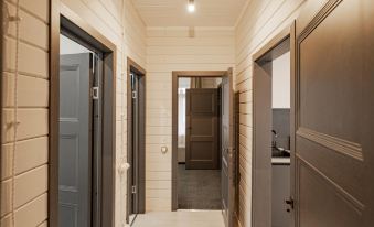 Номера просторные и чистые. В домике две отдельные комнаты в каждой комнате своя душевая с туалетом. Общая Терраса и общая кухня. Это, наверное одно из самых лучших по компановке номера мест. Когда можно снять домик либо семье и жить в разных комнатах либо друзьям. Хочу отметить прекрасную звукоизоляцию. Из минусов - теплая вода по бойлеру, так что сразу если все 4 человека пойдут мыться она быстро закончится. Но тут можно немного подождать и все нагреется. И ещё минут что на территории пока только земля и ничего нет. Видно что только - только открылись и ещё газон деревья не высадили. Но от этого и плюс что только открылись номера чистейшие и не уставшие. Тут же есть Река, и банька где можно нырнуть прямо в реку.