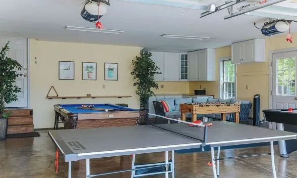 • Garage game room with ping pong, foosball, pool, and air hockey for all ages