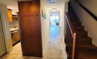 The first floor consists of an updated kitchen with stainless steel appliances, quartz countertops and everything you need to make mealtime a breeze. Sit at the round-glass dining table which features comfortable chairs for 5, for meals with a view or maybe work on a puzzle or play a game with family and friends. The living room with its comfortable brown leather couch and sleep-inducing electric Lazy-Boy chair is the perfect place to gather at the end of the day. If you can tear your gaze away from the waves breaking on the beach, there is cable tv, with plenty of channels to choose from, along with apps for all the streaming platforms. Also located downstairs is a half bath, convenient when company is over and/or for limiting the need to go upstairs.
