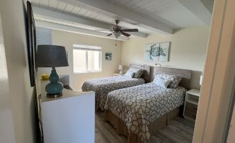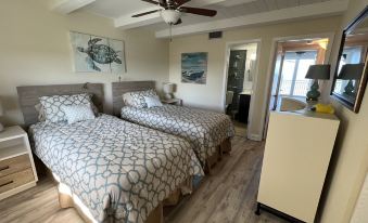 The guest bedroom has 2 twins which can also be joined together to form a king. The guest room bath has a beautiful, tiled shower which evokes the dreams of mermaids.