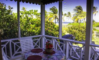 Perfect for honeymoon, romantic holiday, one or two person retreat CONCH SHELL COTTAGE is located on a secluded white coral sand beach with the privacy of a picket fence draped in flowering bushes and palms, and acres of beach, yet without being too isolated. The interior of CONCH SHELL COTTAGE, in Caribbean style vaulted ceiling, is bright, inviting and charming with original art by local artists, is immaculately clean and very well maintained. The screened-in porch has a table, chairs, and hammock while the patio has comfortable lounge chairs for sunning, relaxing and reading. You can see the beach, hear the waves curling over the pristine reefs and enjoy the magnificent clear evening sky with moonlight and incredibly bright stars. You will be met at the airport and brought by cab and water taxi to the cottage.