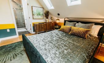 This gorgeous 1,800 sq. ft. 3 bedroom, 2 1/2 bathroom suite at The Inn at Newton Highlands is impeccably designed and decorated. It occupies the second and third floors of the building and immerses you in luxury and style. Its private 800 sq. ft. deck offers stunning views of the village. The space comes with a bonus room. This suite is one of several luxury suites in a small boutique Inn located in the heart of Newton Highlands in a beautiful , fully remodeled historic building.