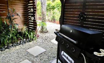 With private outdoor areas, modern decor, Aircon , kitchen, UV water cooler, BBQ , super king bed, outdoor dining, a large pool to cool off in, complimentary kayaks and paddle boards. Stroll to all the activities, dining , night market , restaurants, resorts and bars the Studio really does tick all the boxes